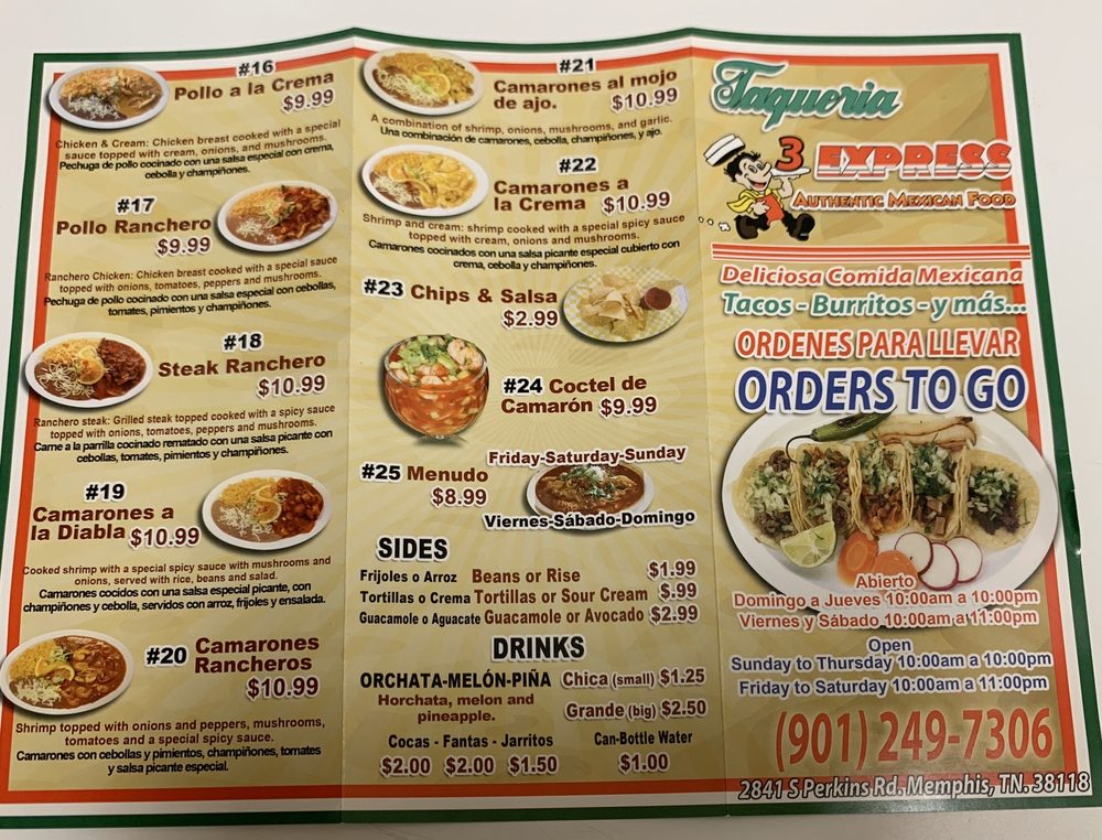 Welcome to Taqueria Express #3, your go-to destination for authentic Mexican cuisine in Memphis! Nestled at 2841 S Perkins Rd, this vibrant taqueria excels in delivering a delightful array of dishes that cater to all palates. Indulge in their famed 99 cent tacos and savor the flavors of Camarones al Mojo de Ajo and fish tacos—both customer favorites.